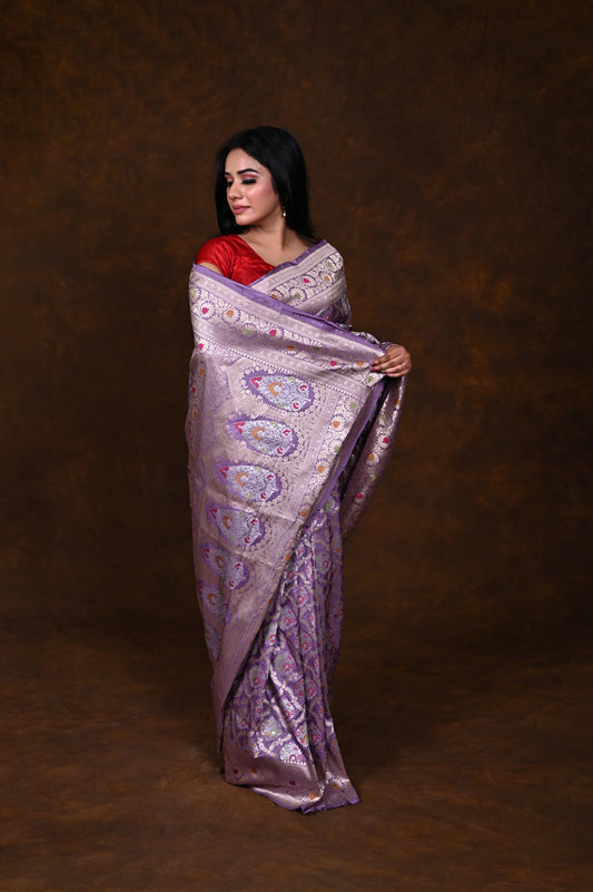 Purple Handwoven Pure Katan Meenakari Banarasi Saree
