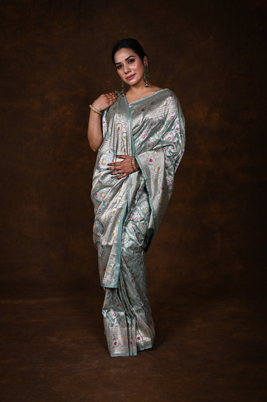 Banarasi Handwoven Pure Katan Meenakari Saree