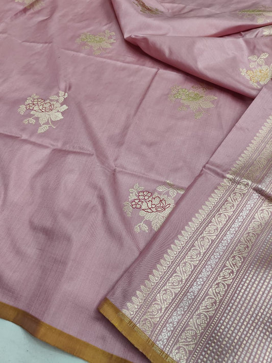 Baby Pink Handwoven Pure Katan Meenakari Banarasi Saree