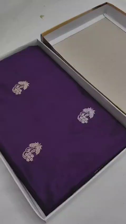 Purple Handwoven Pure Katan Meenakari Banarasi Saree