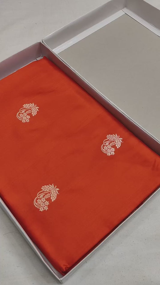 Orange Handwoven Pure Katan Meenakari Banarasi Saree