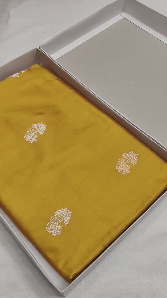 Mustard Handwoven Pure Katan Meenakari Banarasi Saree