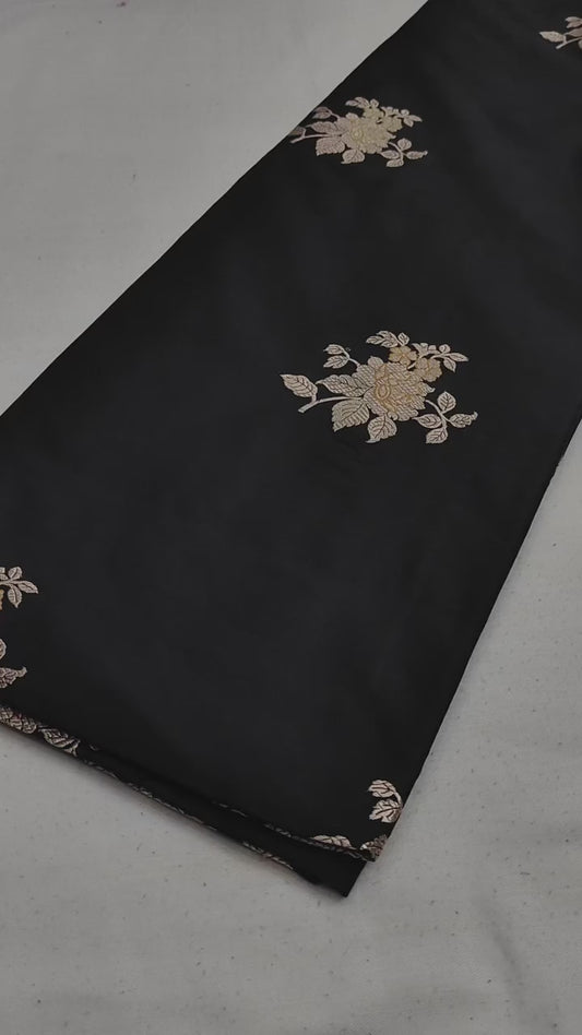 Black Handwoven Pure Katan Meenakari Banarasi Saree