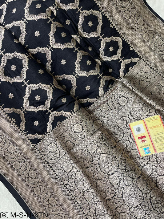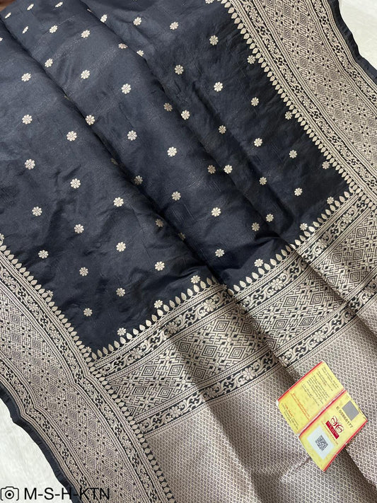 Black Pure Banarasi Handwoven Kadhua Katan Silk Saree