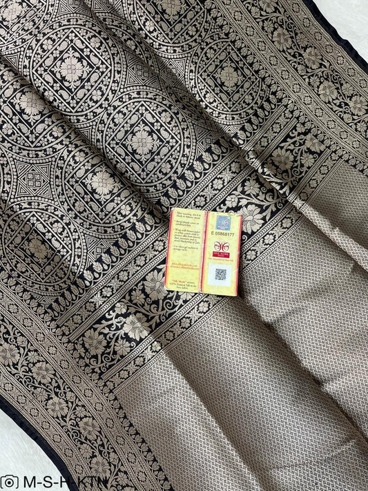 Black Banarasi Pure Handwoven Katan Brocade Saree