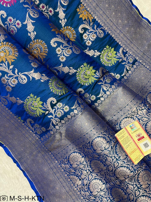 Blue Handwoven Pure Katan Meenakari Banarasi Saree