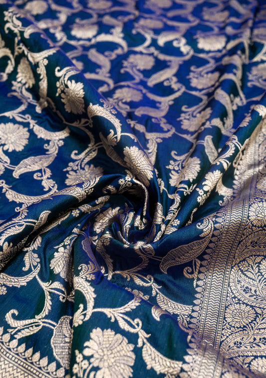 Blue Banarasi Pure Handwoven Katan Brocade Saree