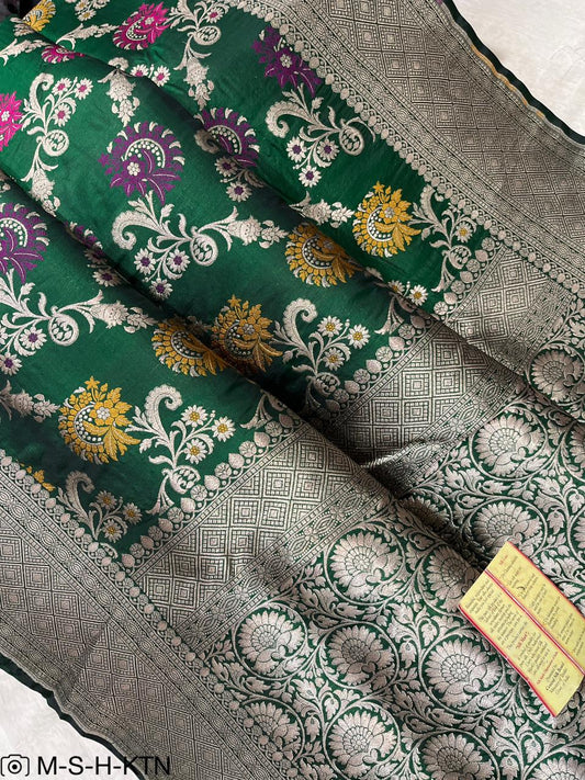 Green Handwoven Pure Katan Meenakari Banarasi Saree