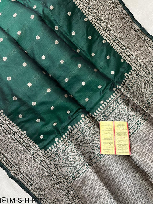 Bottle Green Handwoven Vintage Pure BanarasiĀ SilkĀ Boota Saree