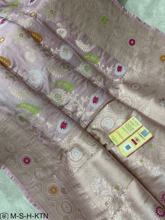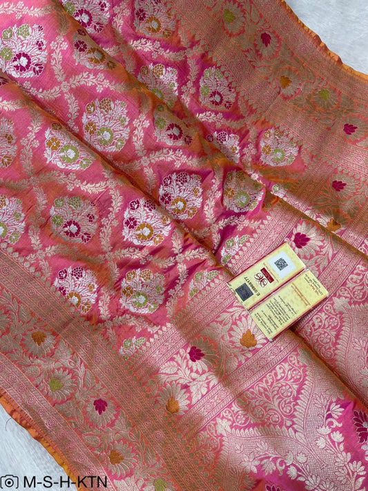 Dual Pink Handwoven Pure Katan Meenakari Banarasi Saree