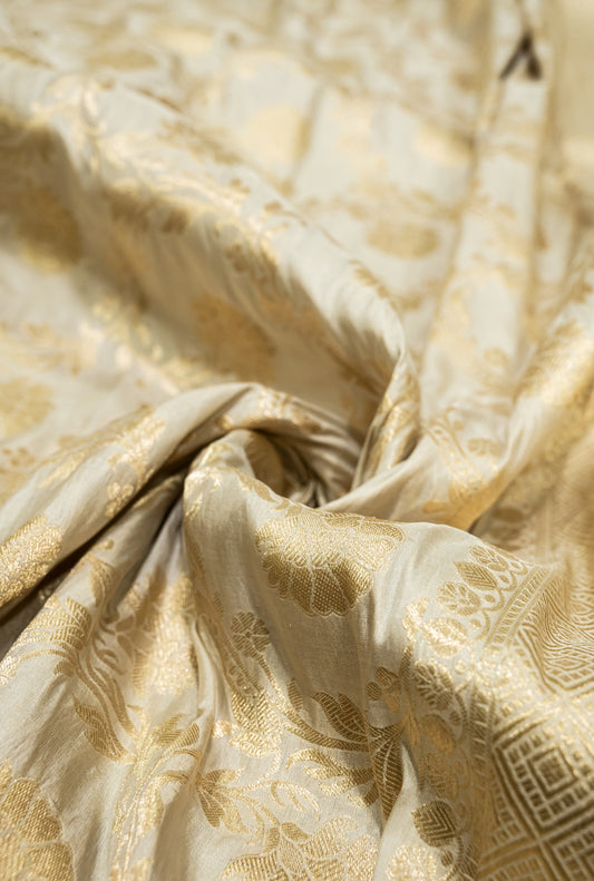 Cream Jaal Handwoven Pure Katan Silk Banarasi Saree