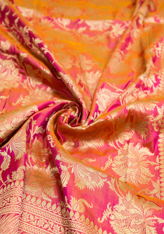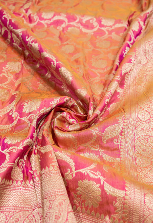 Dual Shade Rani Pink Pure Katan Silk Banarasi Saree
