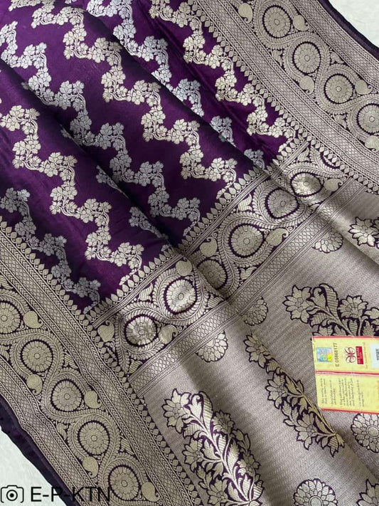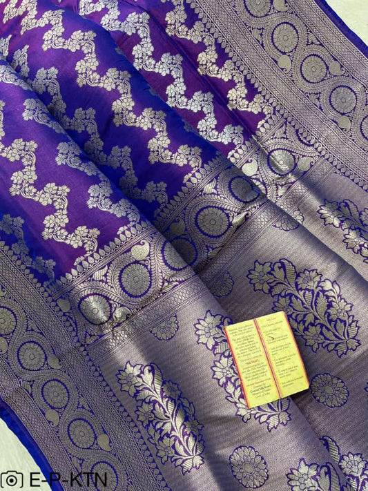 Pure Handloom Katan Cutwork Purple Banarasi Saree