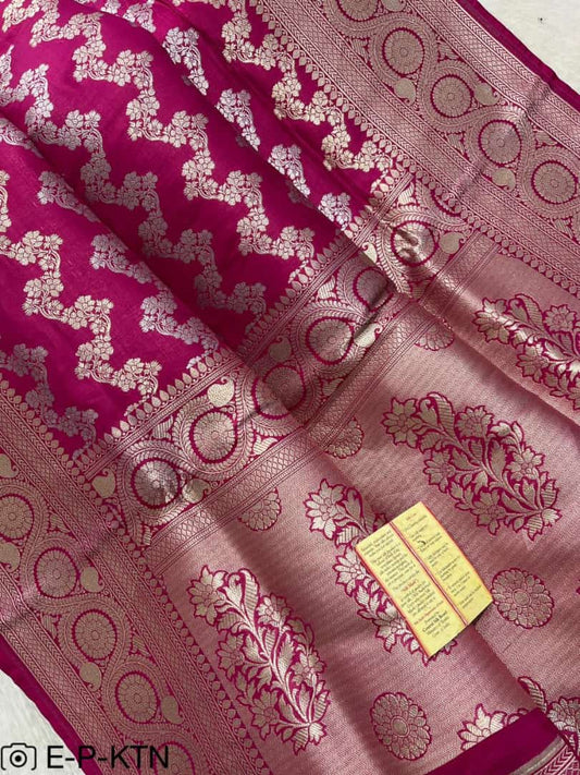Pure Handloom Katan Cutwork Garnet Banarasi Saree