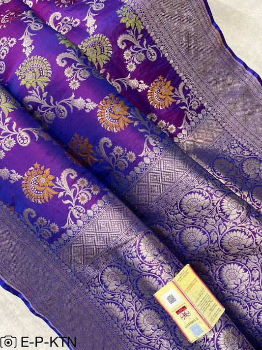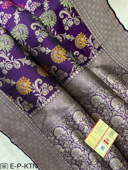 Pure Handloom Katan Cutwork Purple Banarasi Saree