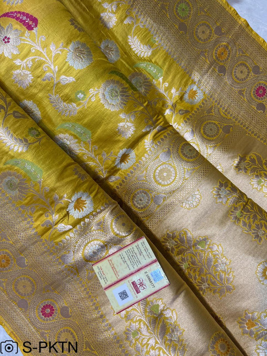 Katan Meenakari Handloom Banarasi Saree for Haldi Ceremony