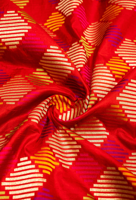 Red Handwoven Pure Katan Multi Meenakari Banarasi Saree