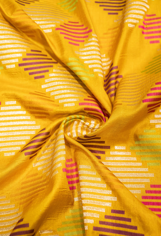 Mustard Handwoven Pure Katan Meenakari Banarasi Saree