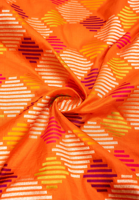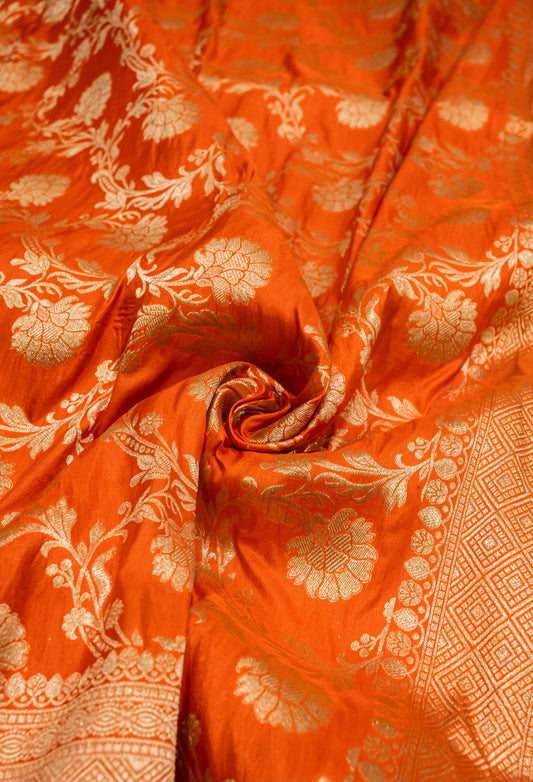 Orange Handwoven Pure Katan Meenakari Banarasi Saree