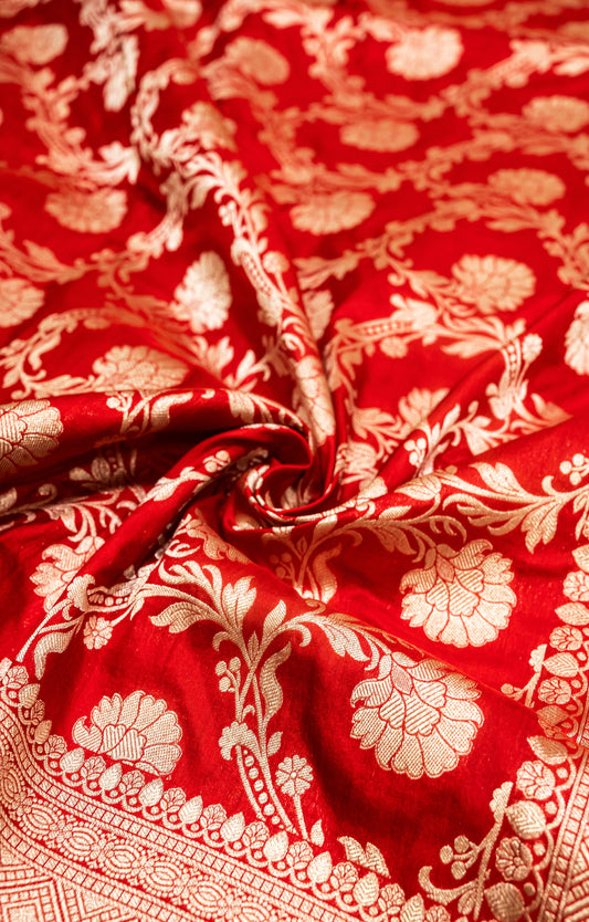 Red Jaal Handwoven Pure Katan Silk Banarasi Saree