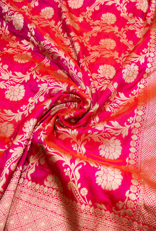 Rani Pink Handwoven Pure Katan Multi Meenakari Banarasi Saree