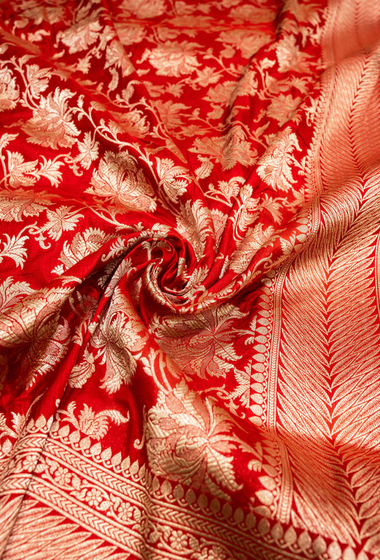 Red Jaal Handwoven Pure Katan Silk Banarasi Saree