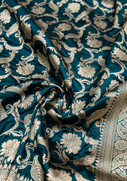 Blue Jaal Handwoven Pure Katan Silk Banarasi Saree