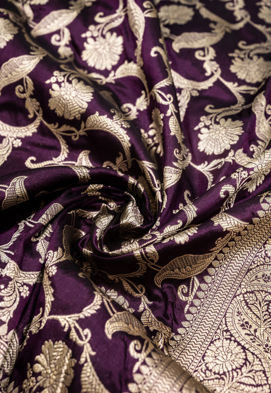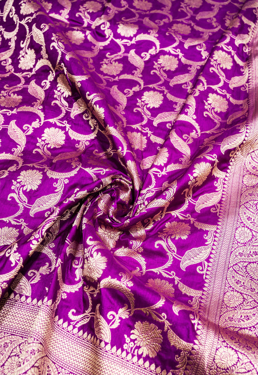 Purple Jaal Handwoven Pure Katan Silk Banarasi Saree