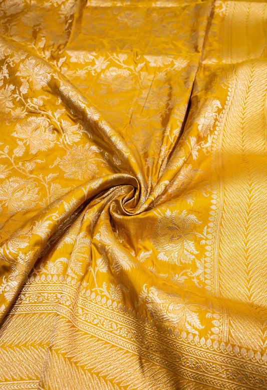 Mustard Yellow Jaal Handwoven Pure Katan Silk Banarasi Saree