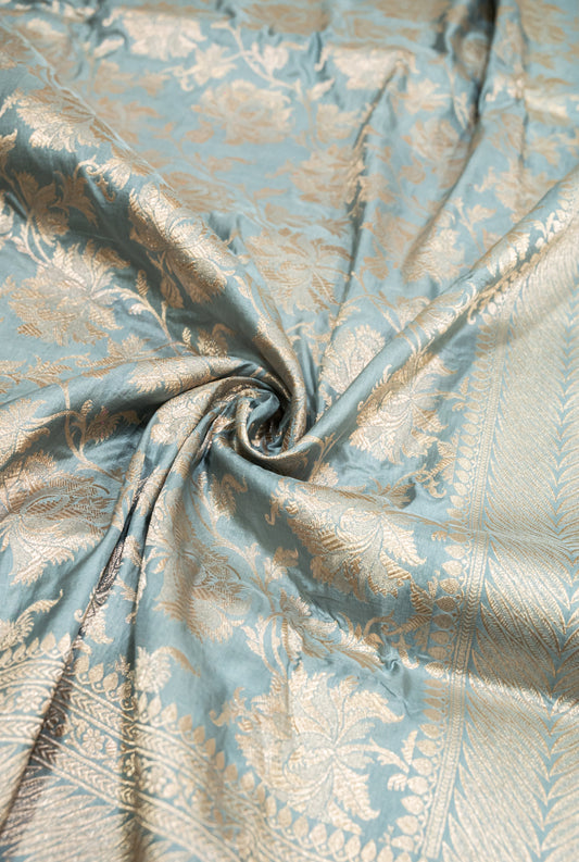 Grey Jaal Handwoven Pure Katan Silk Banarasi Saree