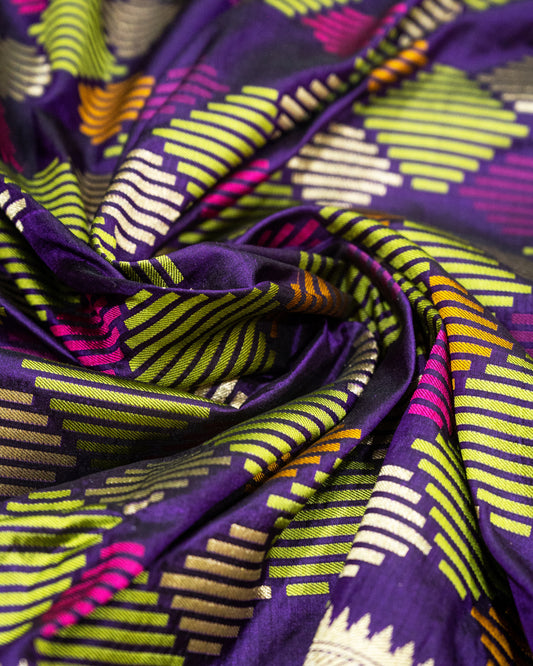 Purple Handwoven Pure Katan Multi Meenakari Banarasi Saree