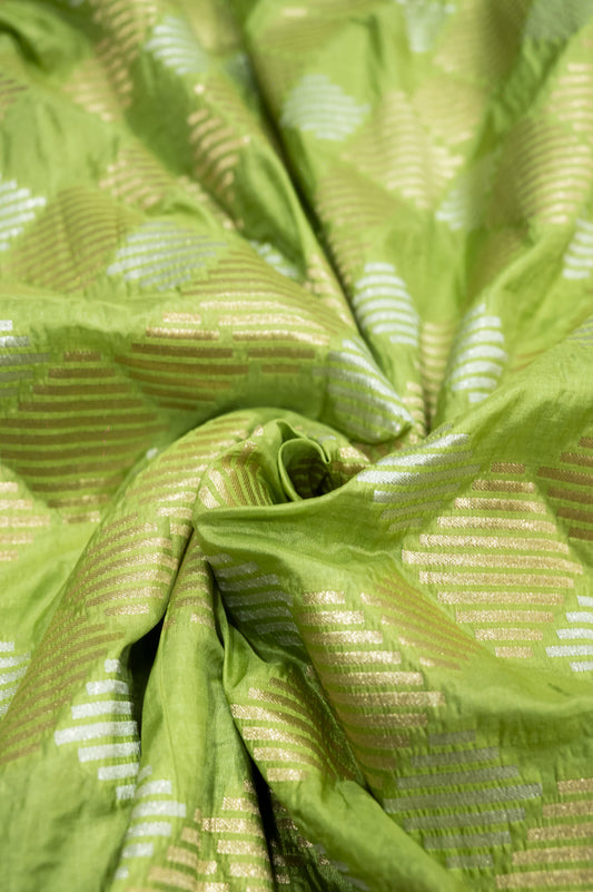 Pista Green Handwoven Pure Katan Sona Roopa Meenakari Banarasi Saree