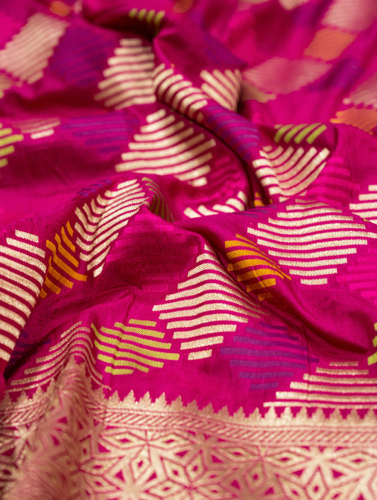 Rani Pink Handwoven Pure Katan Multi Meenakari Banarasi Saree