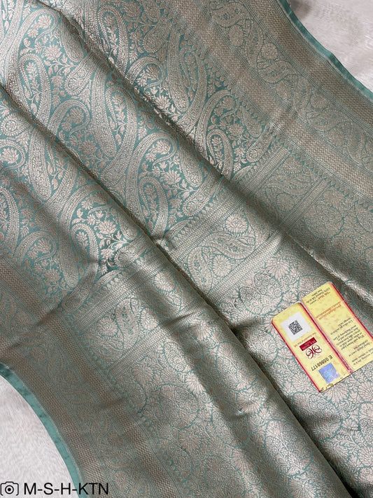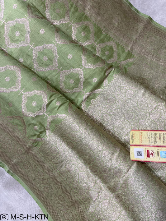 Pista Green Pure Handwoven Katan Cutwork Banarasi Saree
