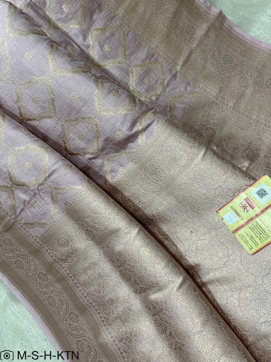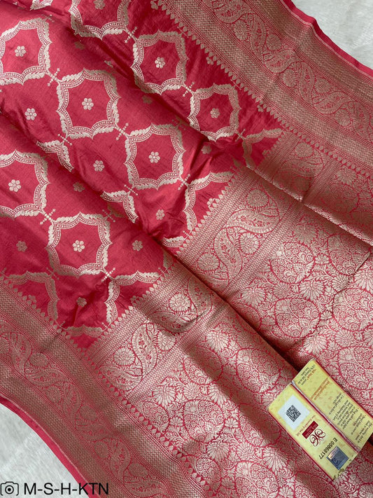 Gulabi Pink Pure Handwoven Katan Cutwork Banarasi Saree