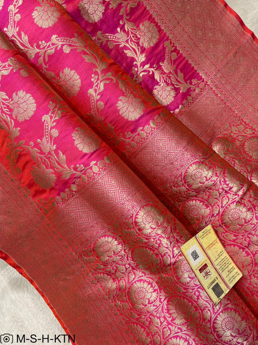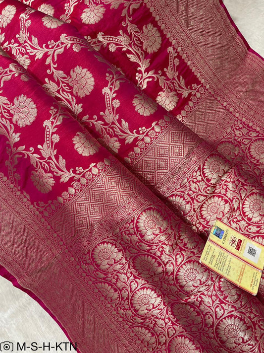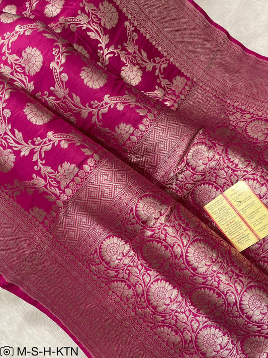 Rani Pink Pure Handloom Katan Cutwork Elegant Banarasi Saree
