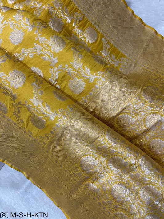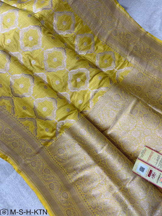 Pure Handloom Katan Cutwork Yellow Banarasi Saree