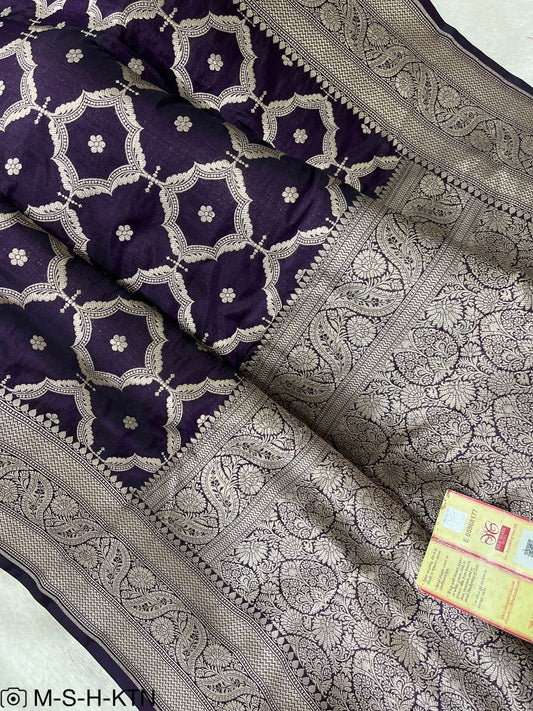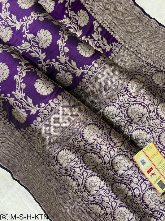Purple Banarasi Pure Handwoven Katan Brocade Saree