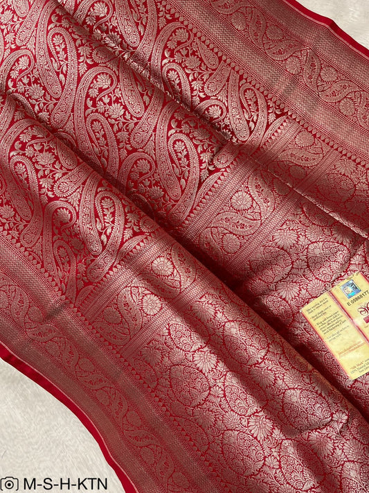 Red Pure Banarasi Handwoven Katan Brocade Saree