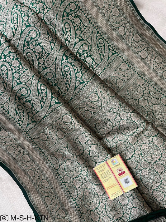 Green Pure Handwoven Katan Cutwork Banarasi Saree