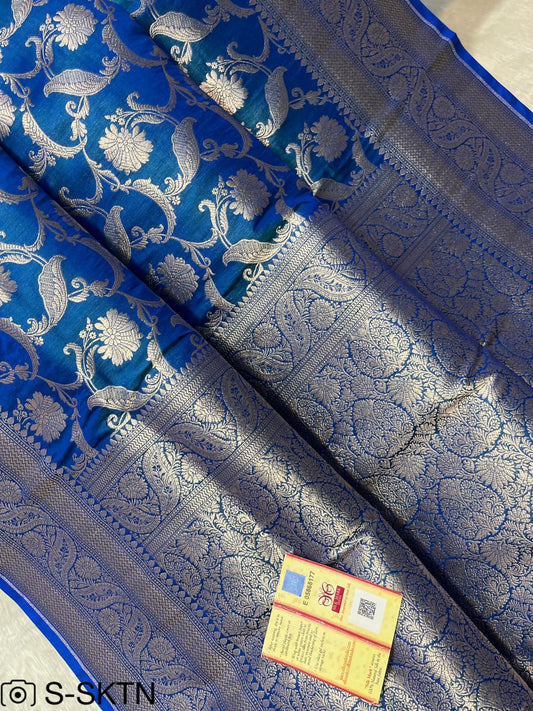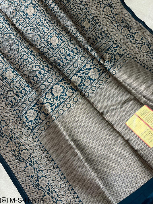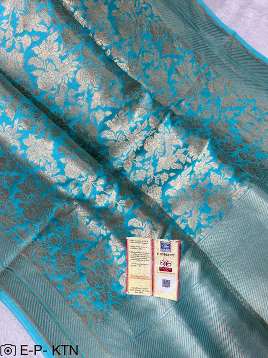 Blue Banarasi Pure Handwoven Katan Brocade Saree