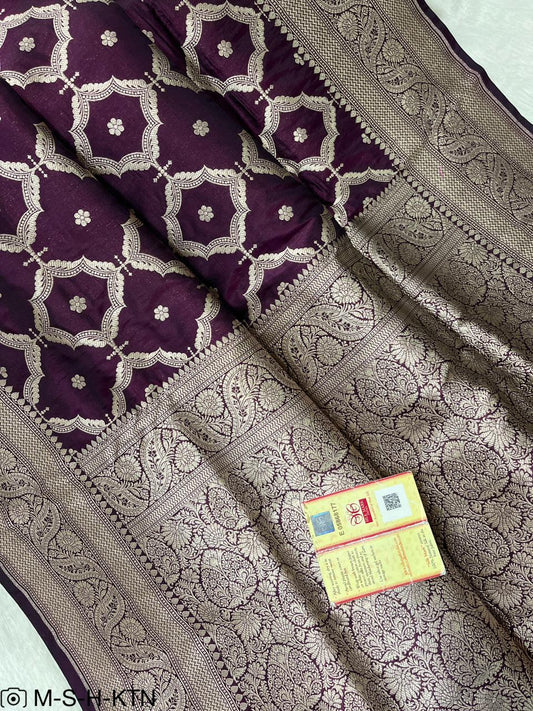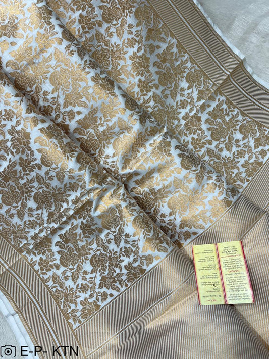 Pure Elegant Handwoven Katan Cutwork Banarasi Saree