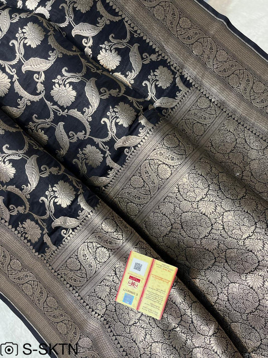 Black Banarasi Pure Handwoven Katan Brocade Saree