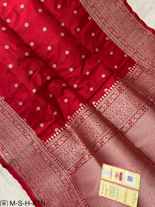 Red Banarasi Pure Handwoven Katan Brocade Saree