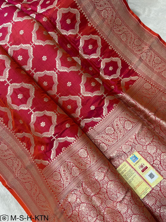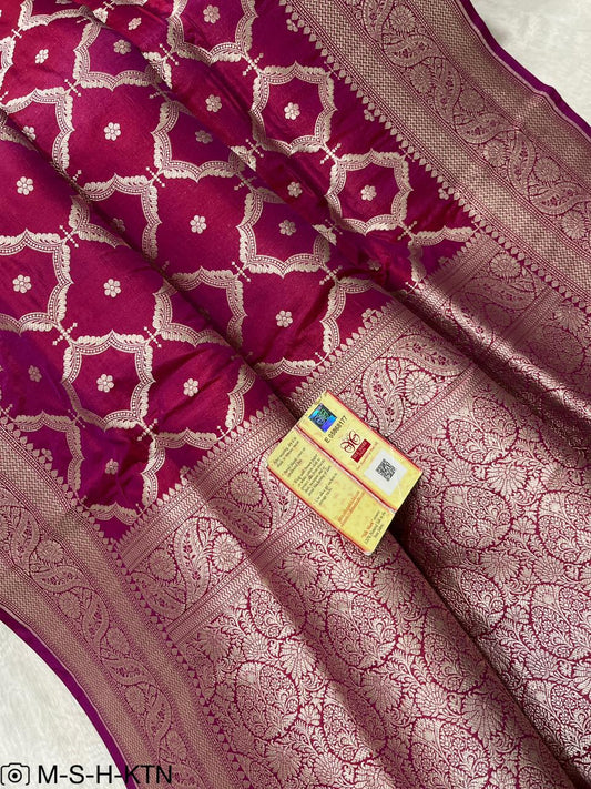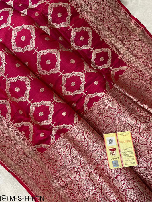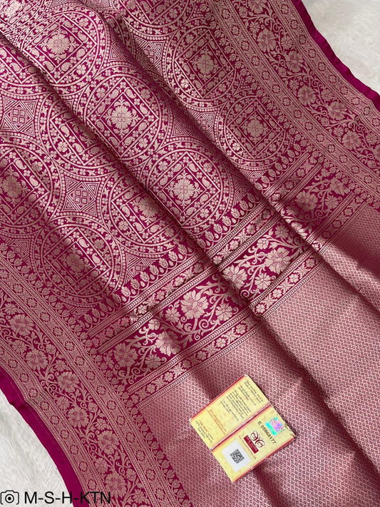 Rani pink Banarasi Pure Handwoven Katan Brocade Saree