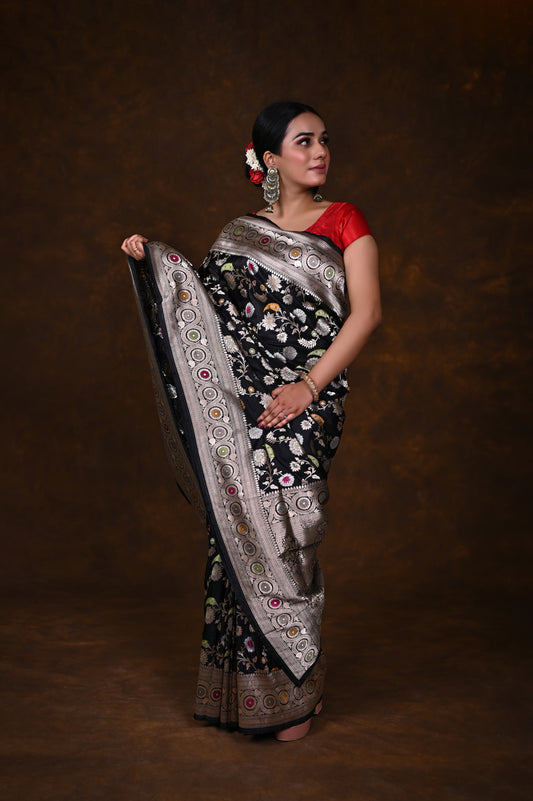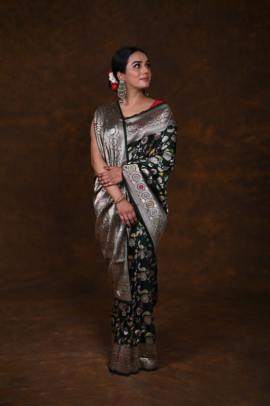 Pure Handwoven Katan Meenakari Banarasi Saree