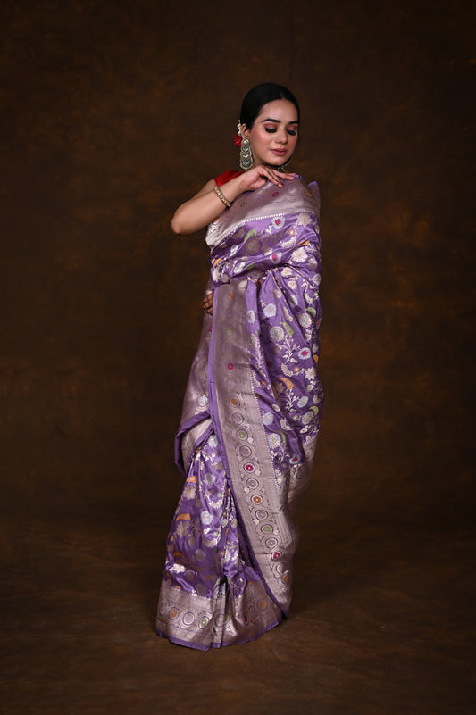 Purple Handwoven Pure Katan Meenakari Banarasi Saree