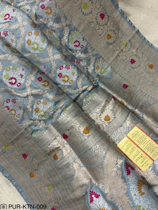 Grey Handwoven Pure Katan Meenakari Banarasi Saree