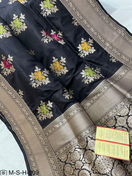 Black Handwoven Pure Katan Meenakari Banarasi Saree