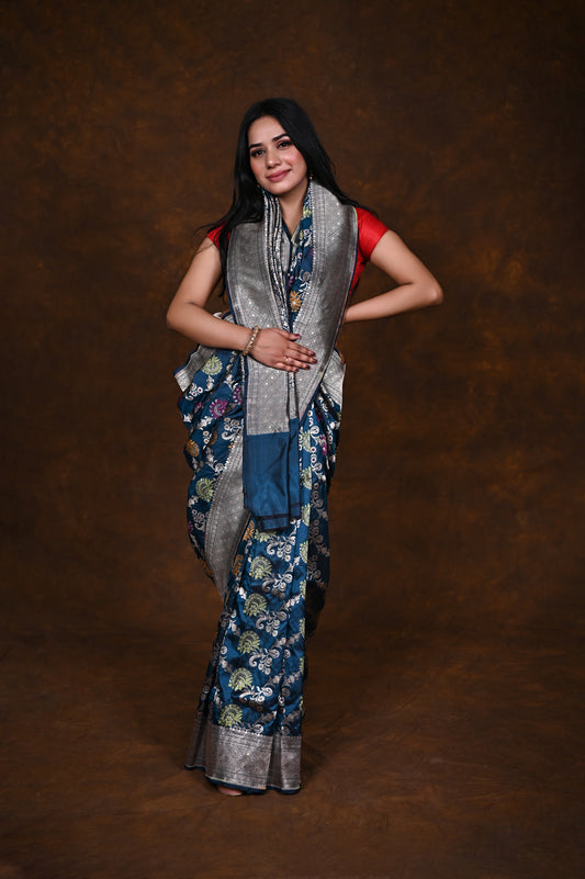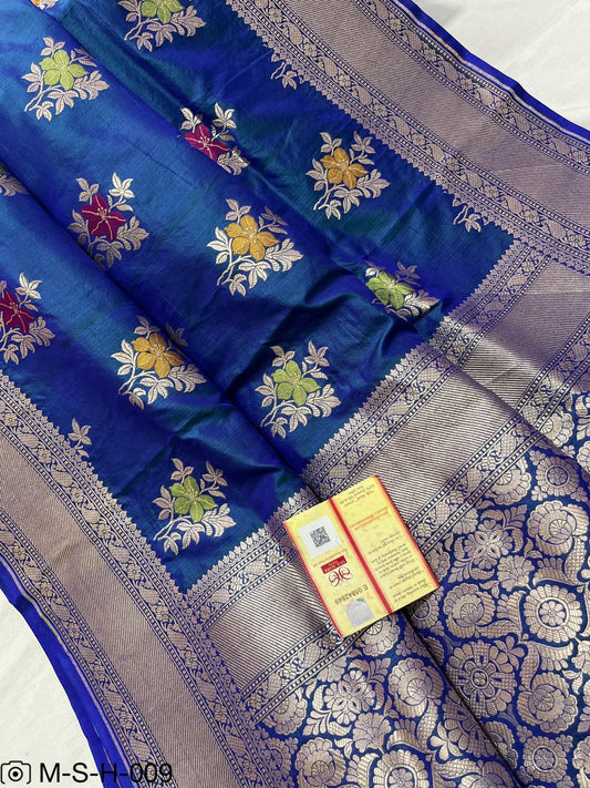 Navy Blue Handwoven Pure Katan Meenakari Banarasi Saree